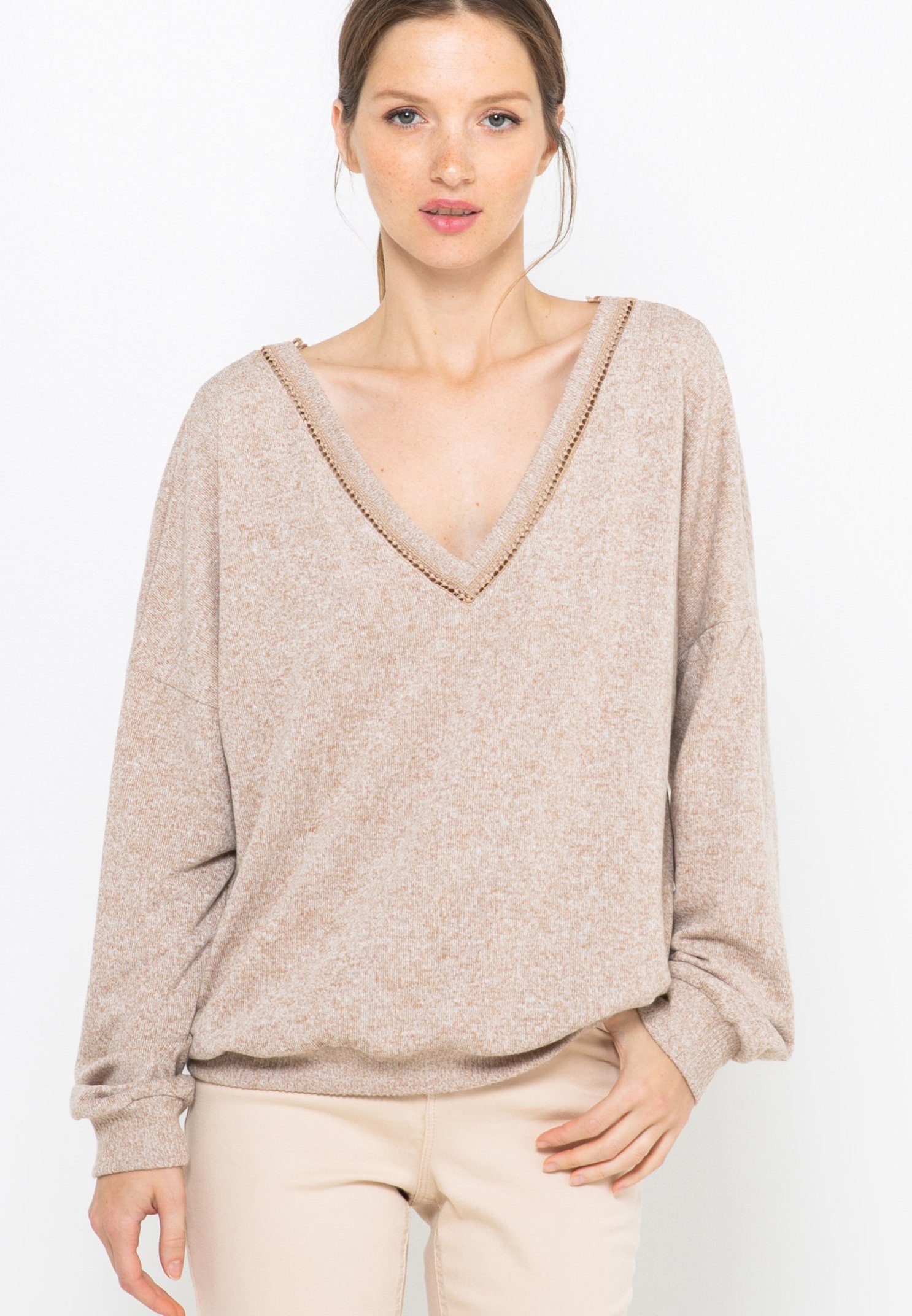 Camaieu Tee Shirt Manches Longues: Col v devant et dos.